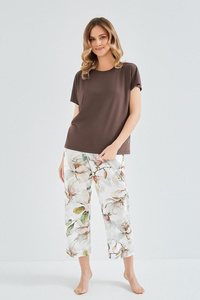 Dámske pyžamo Taro Diana 3607 bavlna kvetinový top nohavice 7/8