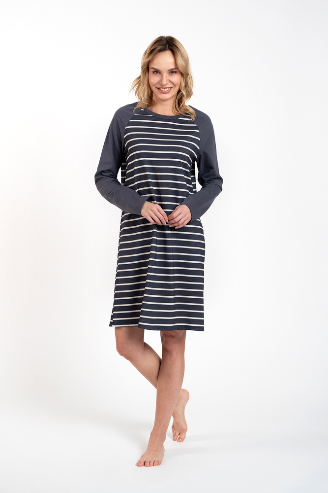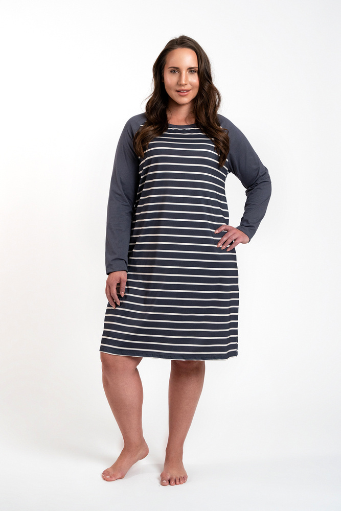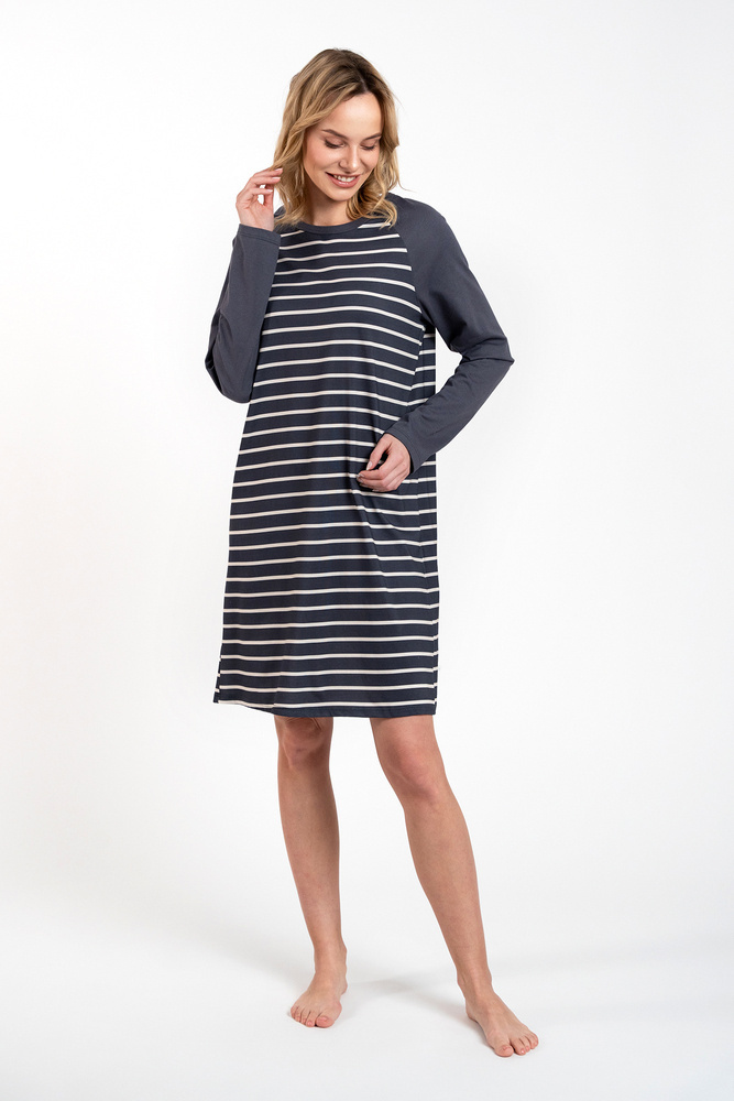 Dámska bavlnená nočná košeľa je zárukou pohodlia a slobody, ktorú si každá žena želá a zaslúži! Ľahká, voľne padnúca košeľa na spanie a bezpečná a k pokožke šetrná tkanina zaistia pohodlie počas chladných aj teplých nocí. Vďaka dlhým rukávom a dĺžke po kolená je nočná košeľa ideálna na doma aj na cesty a nadčasový pruhovaný vzor sa hodí pre každú ženu. Nočná košeľa zo 100 % bavlny je k dispozícii v dvoch farbách - grafitovej a cappuccino - a vo veľkostiach S až XXL.