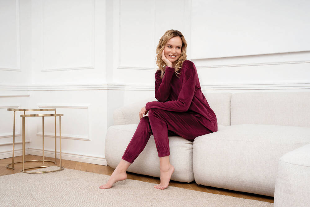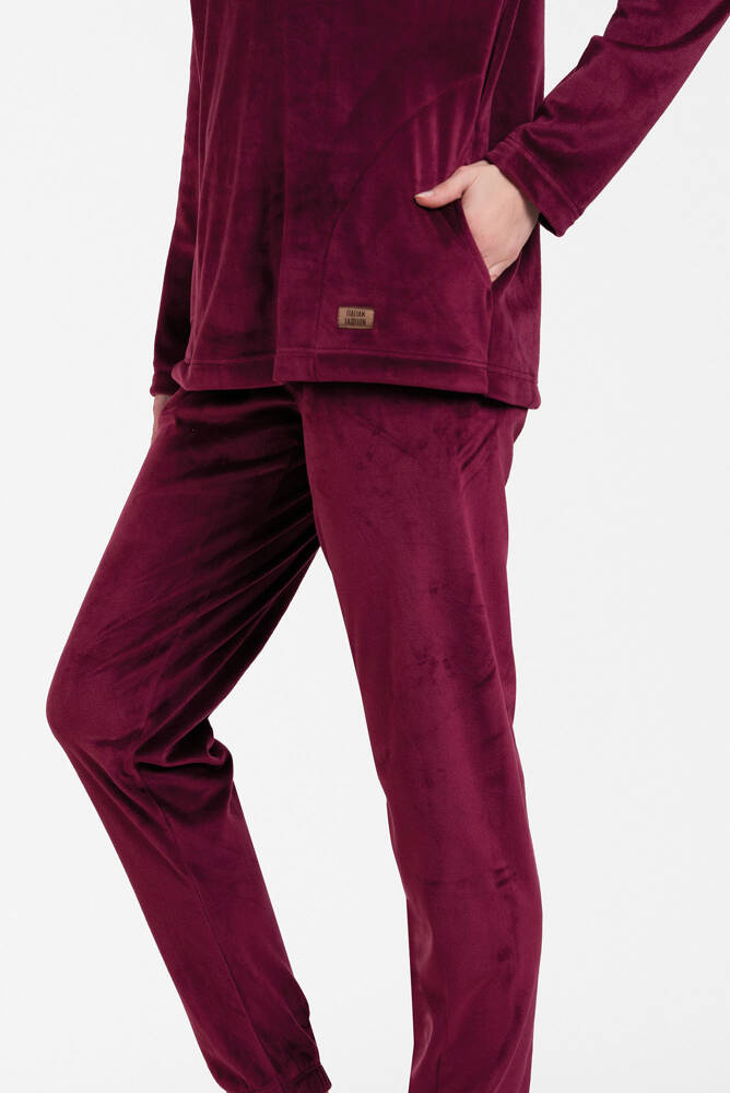 Elegantný a zároveň športový. Veľmi pohodlná a teplá dámska súprava z mäkkého flísu ideálna na zimné dni a večery. Môže sa používať ako teplé pyžamo alebo nápadná módna tepláková súprava. Dámska fleecová mikina a nohavice poskytujú voľnosť a pohodlie a zároveň vyzerajú veľmi zaujímavo. Nohavice sú zakončené rebrovanými lemami, zatiaľ čo blúzka s okrúhlym výstrihom má funkčné vrecká. Módna dámska fleecová súprava je k dispozícii vo veľkostiach S až XXL v dvoch farebných variantoch - bordovej a púdrovo ružovej.
