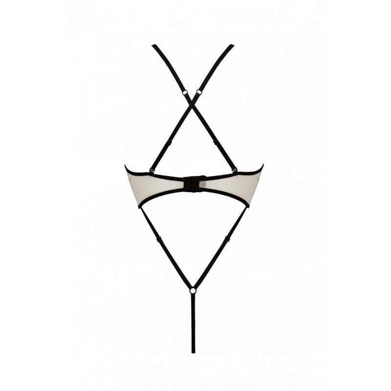 Fantastická kombinácia bielej s čiernymi detailmi. Toto nezvyčajné body so silným strihom vytvaruje vašu siluetu a dodá vám pocit, že ste mimoriadne sexy. Originálny zdobený výstrih a odhalený chrbát. Otvorený krok dodáva charakteru.