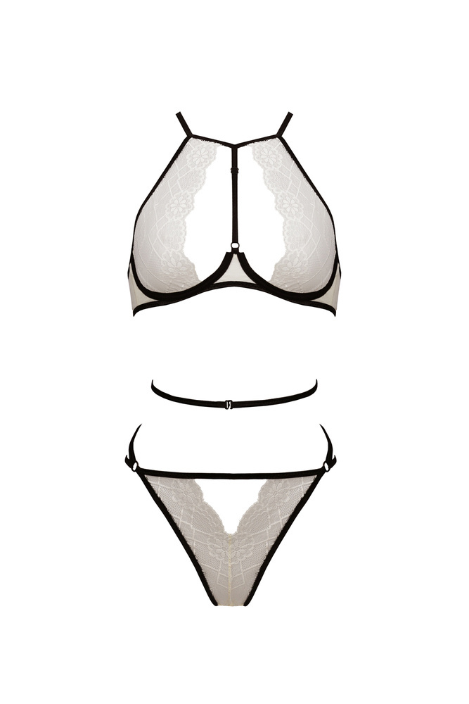 Biela, sladká čipka a čierne pruhy. Vášeň značky Hot Juxtaposition. Zdôrazňuje postavu a vďaka nastaviteľným popruhom sa dokonale prispôsobí ženskému telu. Nie je to dokonalé??