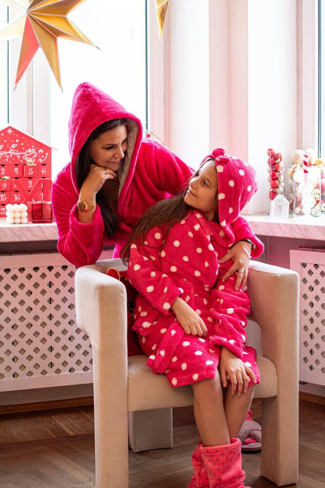 Detský župan FOREX rovného strihu s kapucňou. Dĺžka po kolená, bočné vrecká, pás so zaväzovaním na opasok. Všetko v hrášku. Župan sa dokonale prispôsobí tvaru tela, je mimoriadne mäkký a ľahký, vyrobený z jemnej pleteniny. Zabaliť sa do nej po kúpaní je pôžitok!