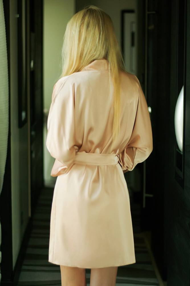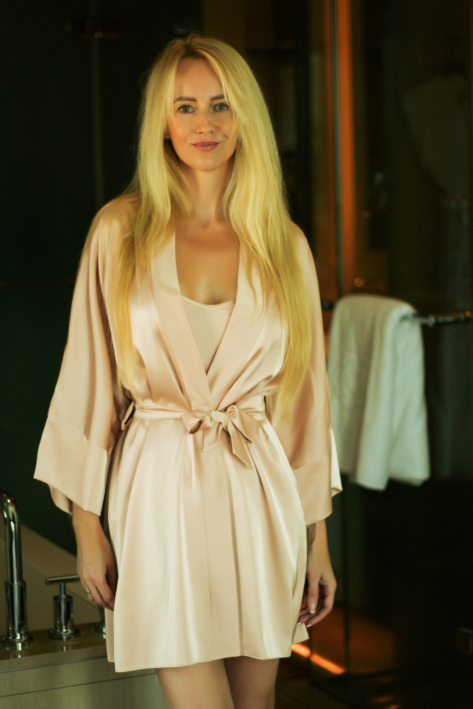 Panama Kalimo je klasický, ale mimoriadne ženský dámsky saténový župan.