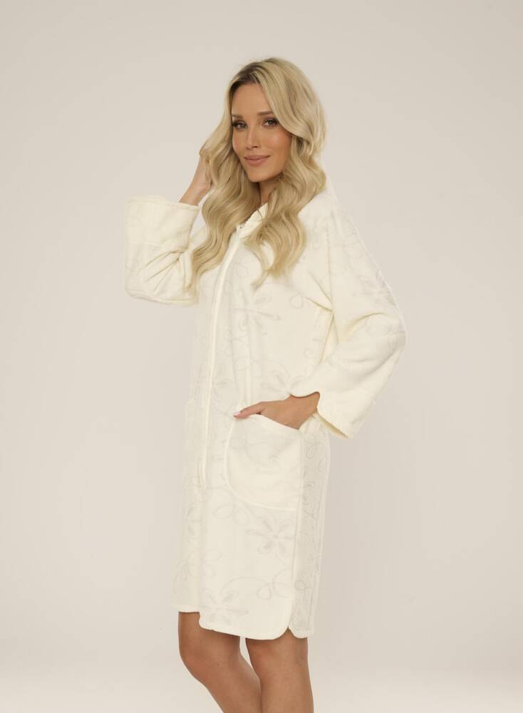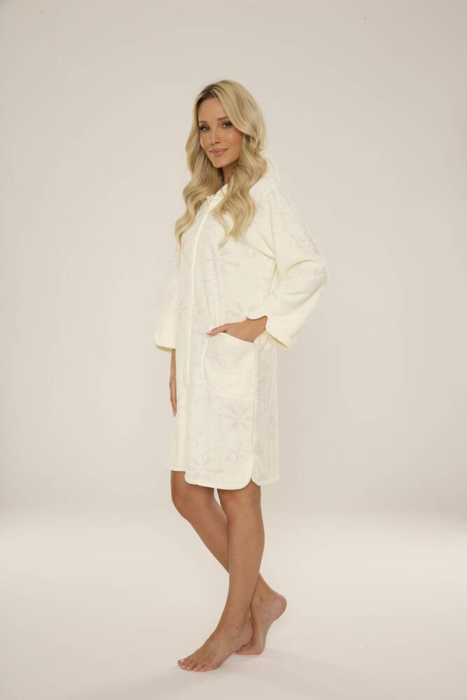 409 Žakárový krátky dámsky župan De Lafense - ecru