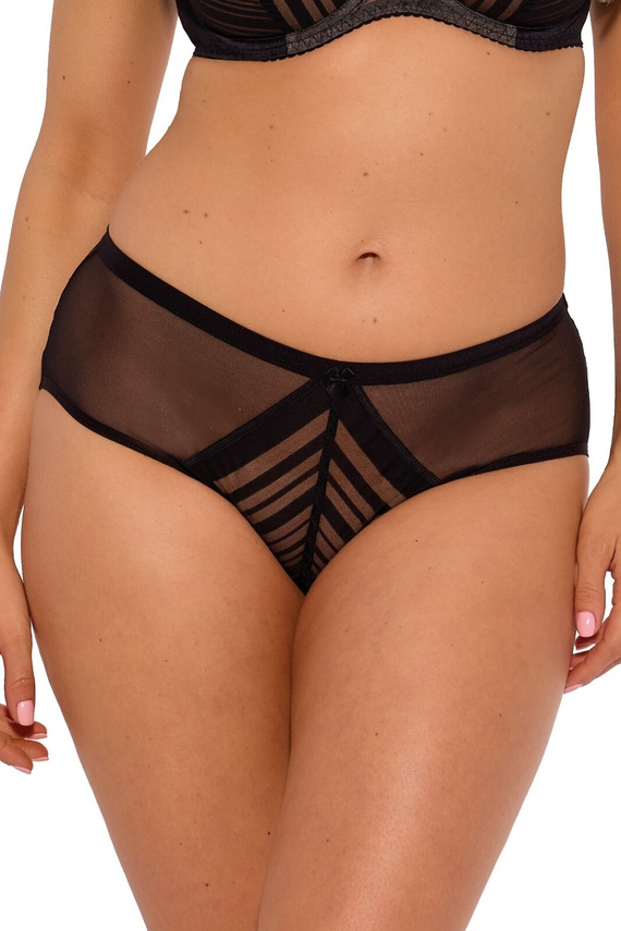 Pôsobivé dámske nohavičky v plnom klasickom strihu. Vyrobené z priehľadnej pruhovanej sieťoviny a hladkého mikrovlákna