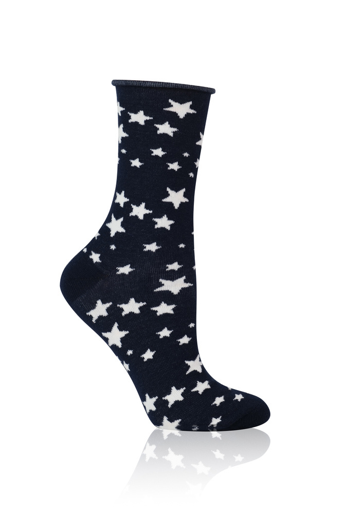 Beztlakové ponožky ukončené zvinutým lemom sú už roky obľúbené v ďalších kolekciách ponožiek Italian Fashion. V tejto sezóne si berú na seba oblečenie z rodiny Arugia a Libra košele a pyžamá s potlačou vždy módneho motívu hviezdy.