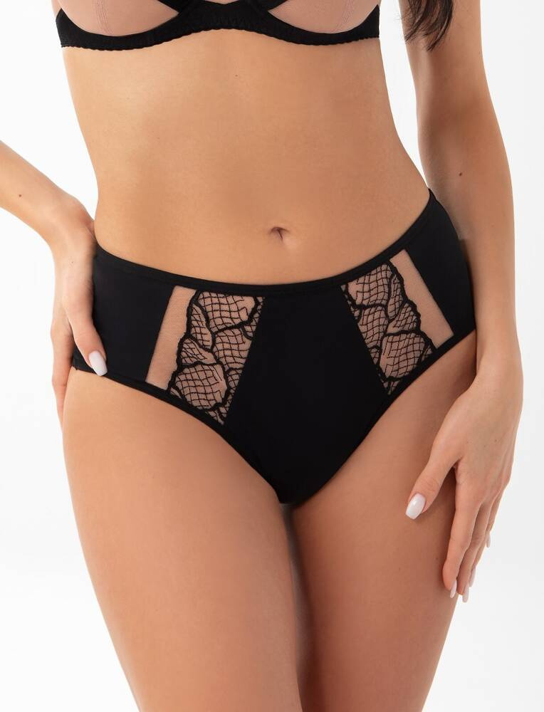 Spodný diel bikín z mikrovlákna. Čiastočne odhaľuje a zvýrazňuje zadok. Vyšívané tylové vložky na prednej strane. Hladký chrbát