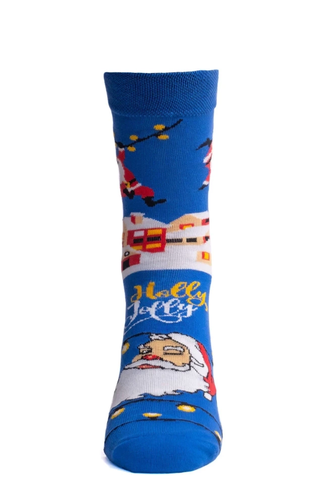 Vianočné ponožky s obrázkom Otca Vianoc a vianočnými želaniami "Holly Jolly"