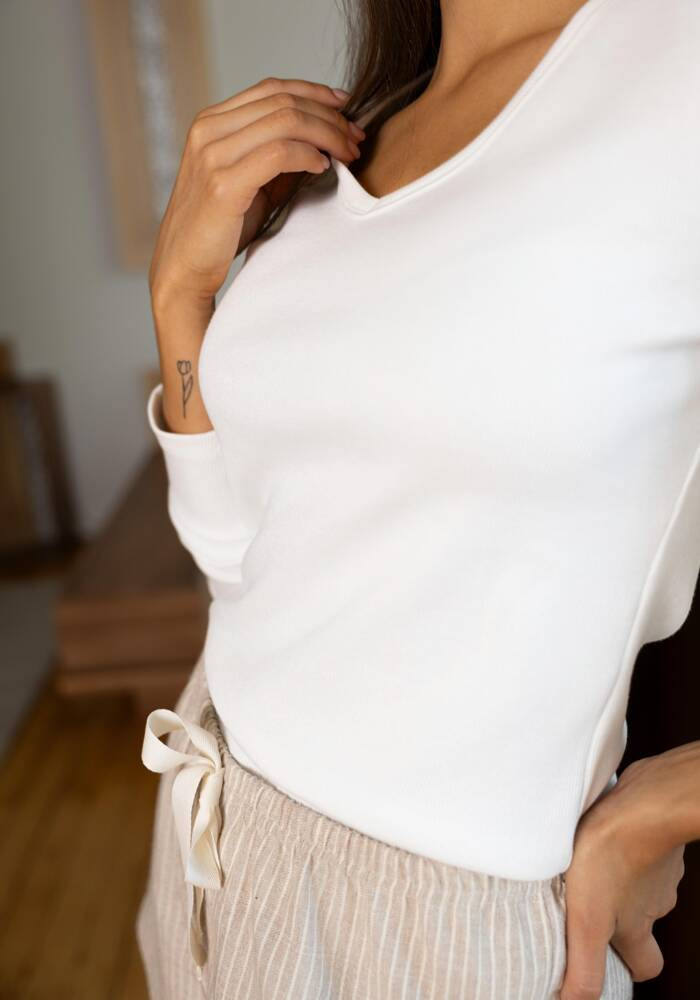 Dámske pyžamo z vysoko kvalitnej bavlny. Tričko s dlhým rukávom, výstrih do V.
