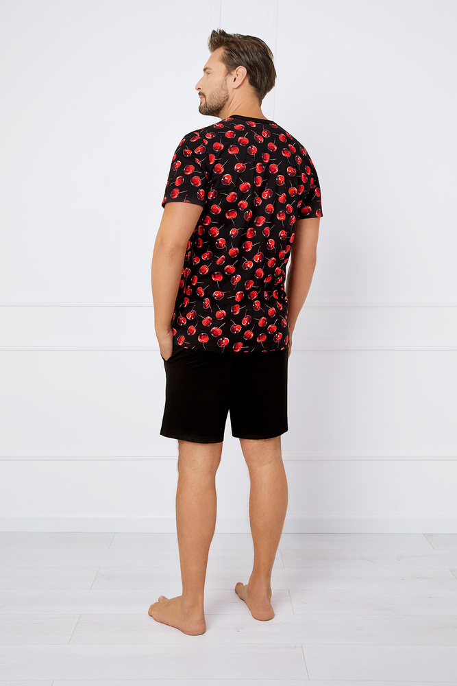 Cherry Pánske pyžamo s krátkym rukávom, šortky Italian Fashion - potlač/čierna