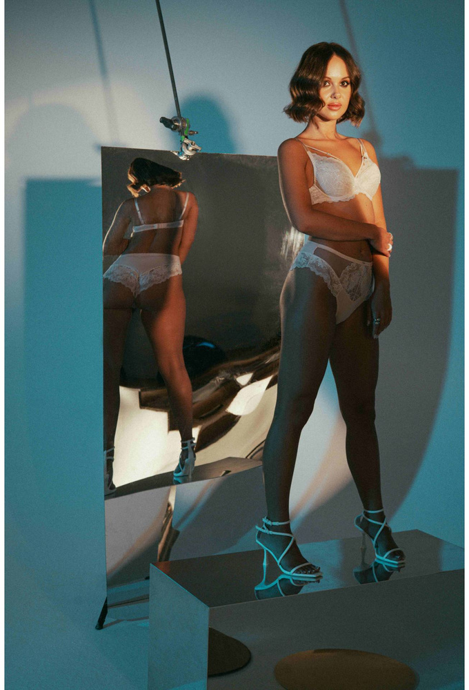 Push up podprsenka s trblietavým brokátom . Košíčky z výraznej čipky s odnímateľnými hubkami. Má nastaviteľné, neodnímateľné ramenné popruhy. Obvod zo stabilného materiálu, bez bočných veľrybích kostí. Upevňuje sa pomocou dvoch alebo troch háčikov s trojstupňovým nastavením. Štruktúra K 1638.