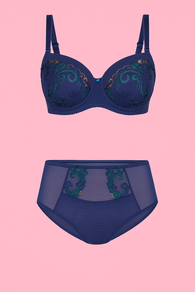 VB-474 Podprsenka s plnými košíčkami Vena - plné košíčky a čipka Vena navy blue-green