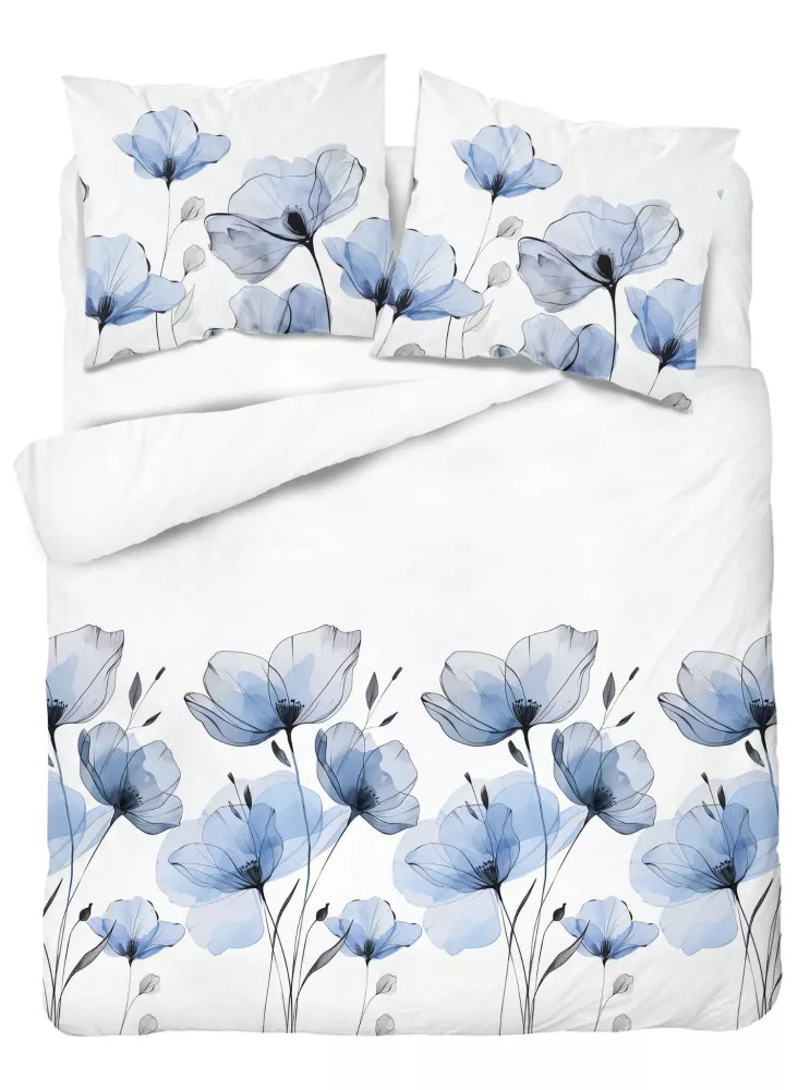 5496 A Bavlnená posteľná bielizeň biela s akvarelovými modrými kvetmi Naturalis- Detexpol