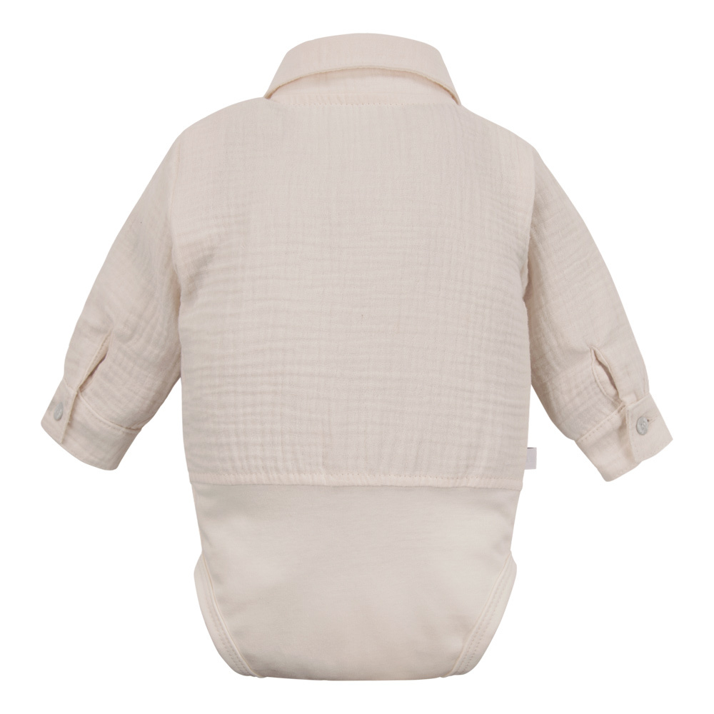 Ceremony mušelínové košeľové body s golierom pre chlapca Eevi elegantné - béžové