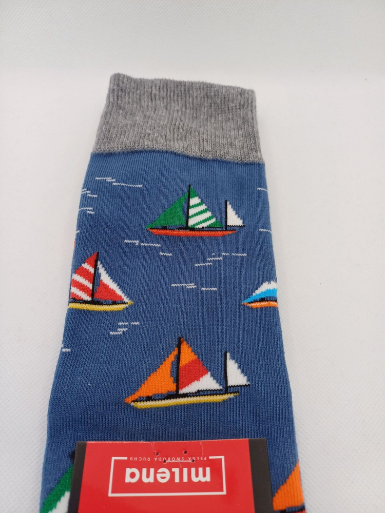 Milena Avangard 0125-117 - Pánske bavlnené ponožky 'Sailboats' | Poľská výroba - denim
