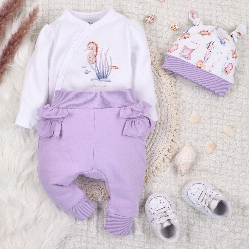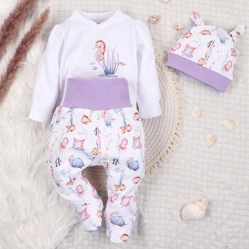 Obalové body Underwater World od Nini spája pohodlie a bezpečnosť pre najmenších. Je vyrobená zo 100 % organickej bavlny, je výnimočne jemná a šetrná k citlivej detskej pokožke. Obálkový strih a praktické patentky na jednoduché prebaľovanie a výmenu plienok. Body má jemný vzor inšpirovaný podmorským svetom, ktorý dodáva detskému štýlu pôvabný nádych. Ideálne na každodenné nosenie a nosenie novorodencov.