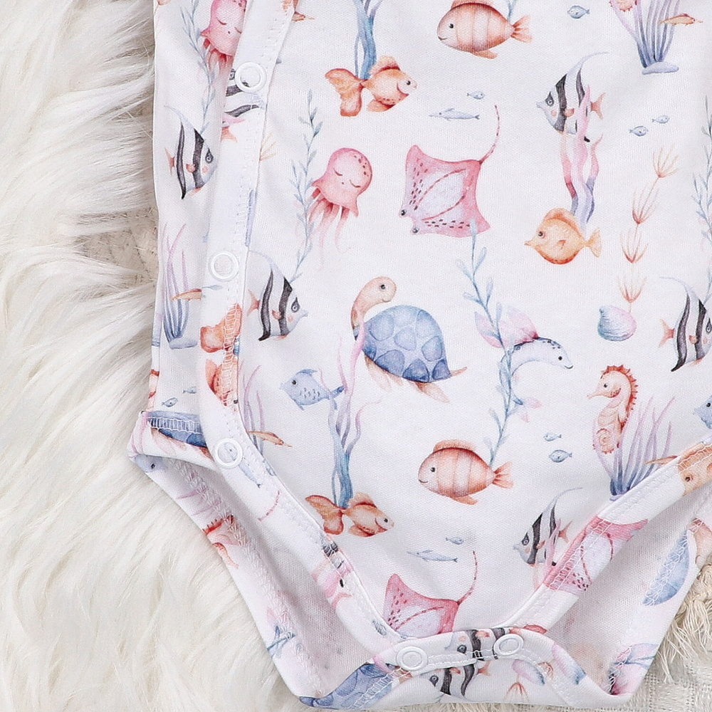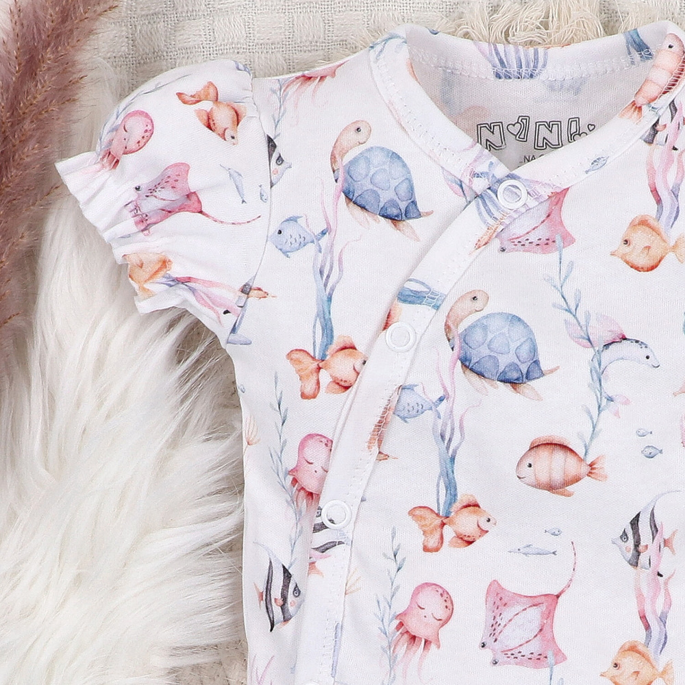 - Body Nini Underwater World - 100% organická bavlna, krátky rukáv, obálkový štýl, pohodlné zapínanie na cvočky.