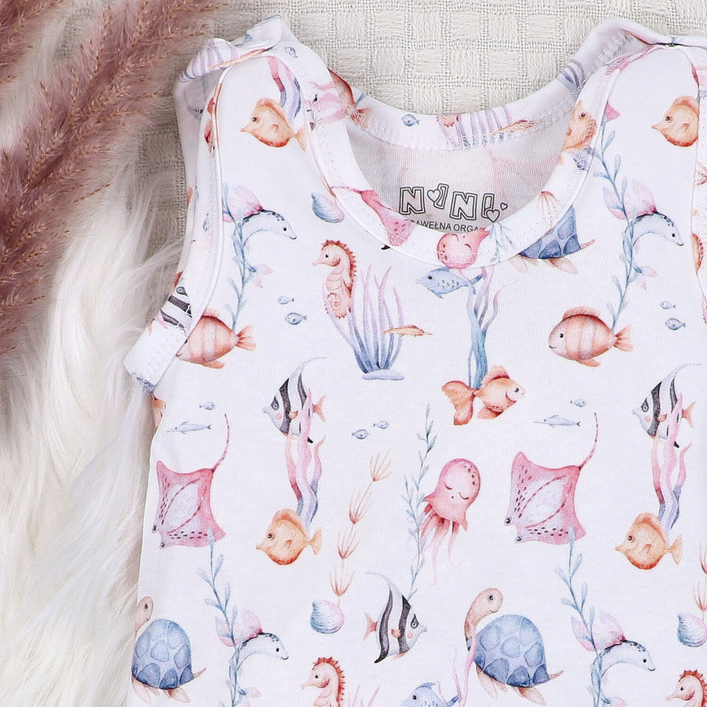 • Spacie oblečenie Nini Underwater World - 100% organická bavlna, zabudované nohavičky, pohodlné zapínanie na cvočky.
