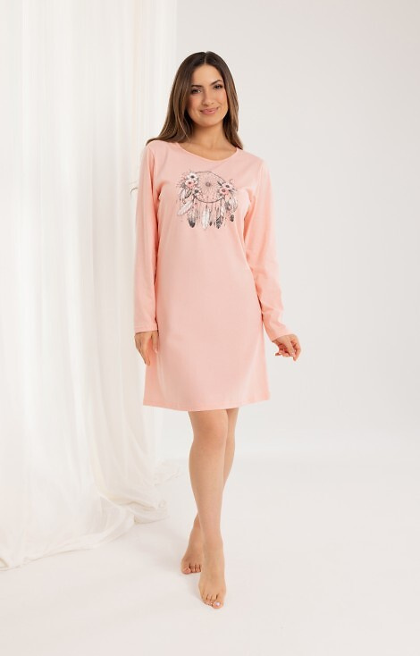 - Bavlnená nočná košeľa Regina 162: dlhý rukáv, polkruhový výstrih, potlač na prednej strane. Dĺžka pred kolenom. 100 % bavlna.