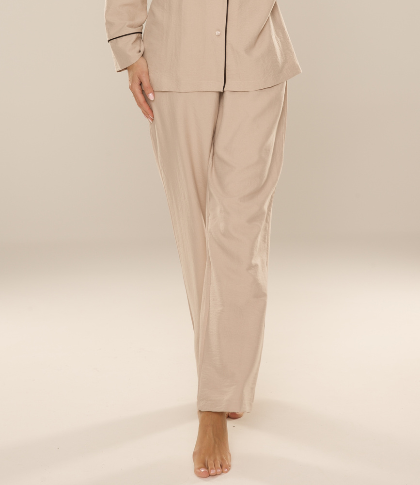 Maeve 875 De Lafense dámske pyžamové nohavice - dlhé, hladké, s vreckami - pieskové