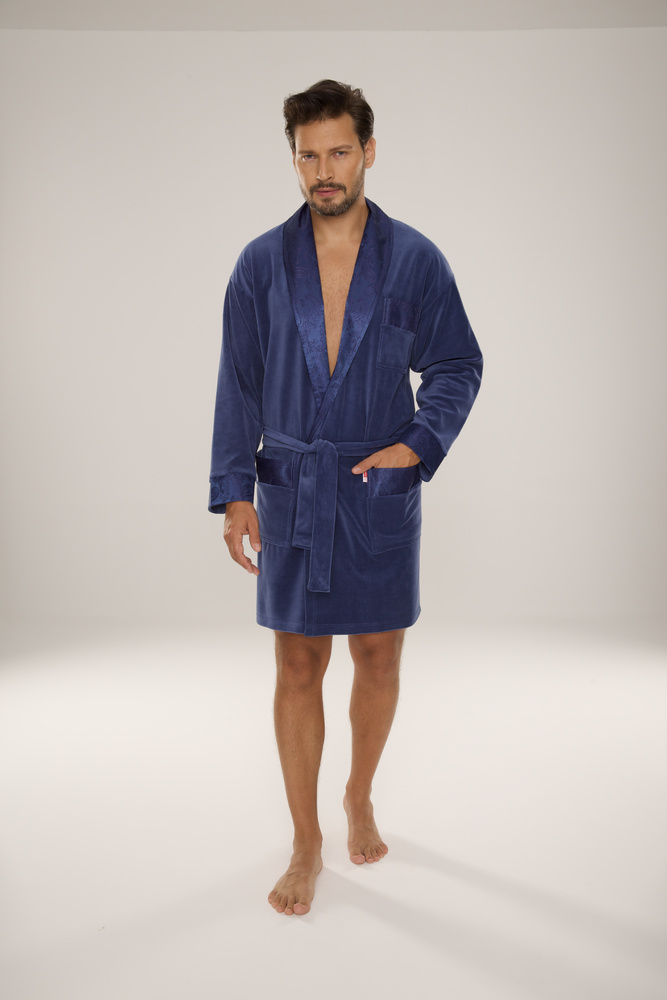 - Exkluzívny pánsky župan z mäkkého velúru. Noble 866 - ideálny na chladné rána a štýlový relax.