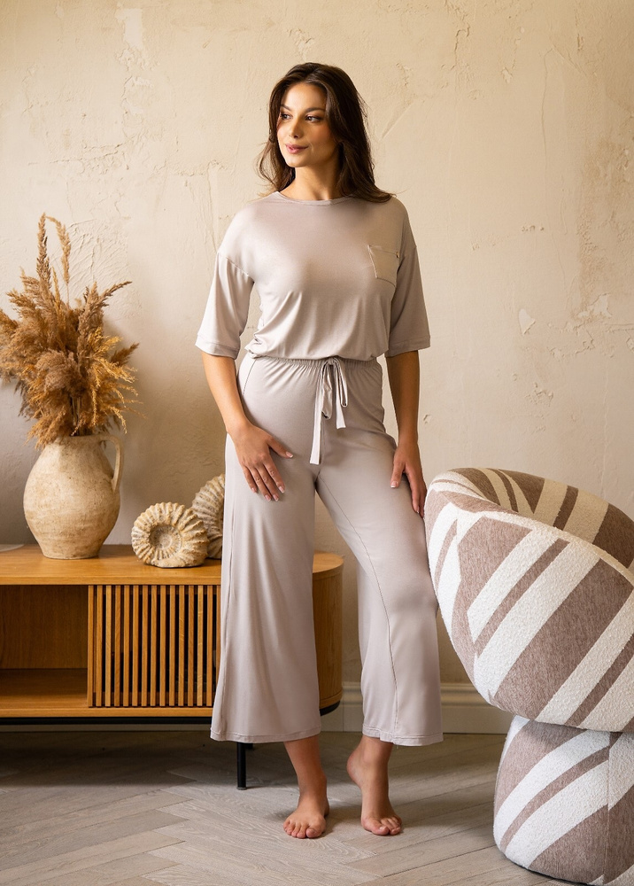 Dámske pyžamo MK34 Only You beige Belle Reverie - viskóza, krátky rukáv, ľahké a zmyselné