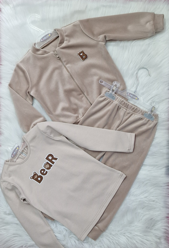 - Detská tepláková súprava Bambarillo Bear z velúru - mäkká, plyšová a hebká. 95% polyester, 5% elastan.