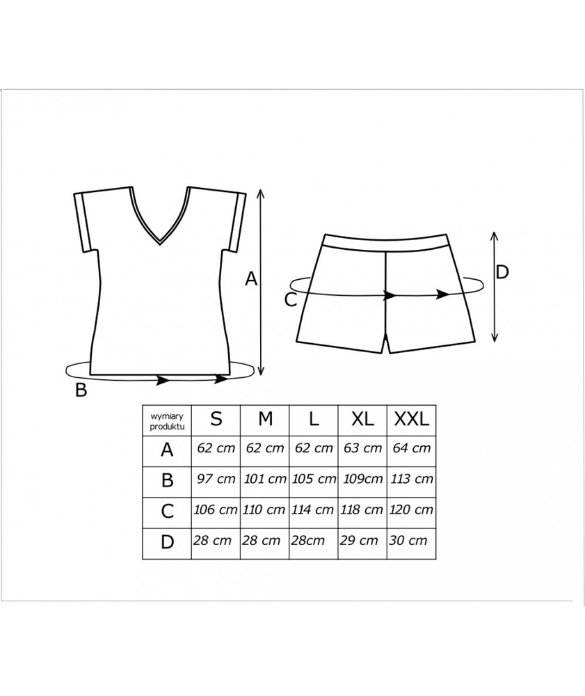 Tričko má krátke rukávy, véčkový výstrih a romantickú kvetinovú potlač, ktorá mu dodáva pôvab. Súprava sa dodáva s krátkymi pevnými šortkami - ideálnymi na teplejšie noci alebo ako pohodlné domáce oblečenie.