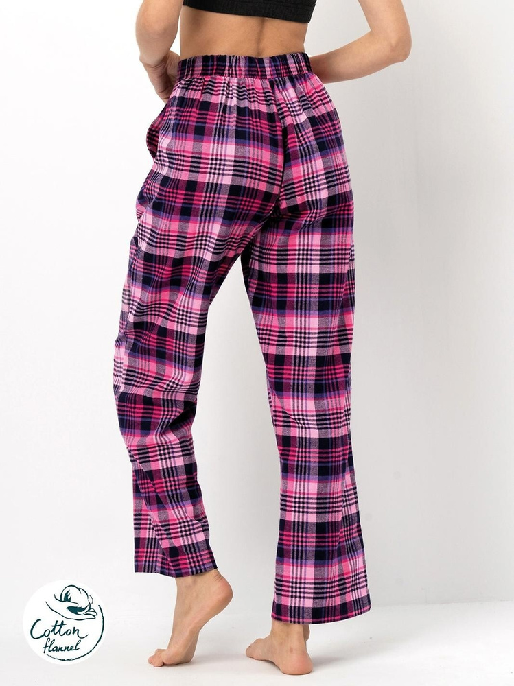 LHE 490 Key fuchsiové dámske pyžamové nohavice - károvaný bavlnený flanel