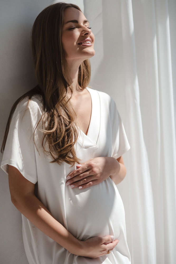 Strih oversize sa dokonale prispôsobí meniacej sa postave - najprv sa prispôsobí tehotenskému brušku a po pôrode krásne padne každej postave. Košeľa má správnu dĺžku, takže sa v nej môžete bez zábran prechádzať po nemocničnej chodbe.