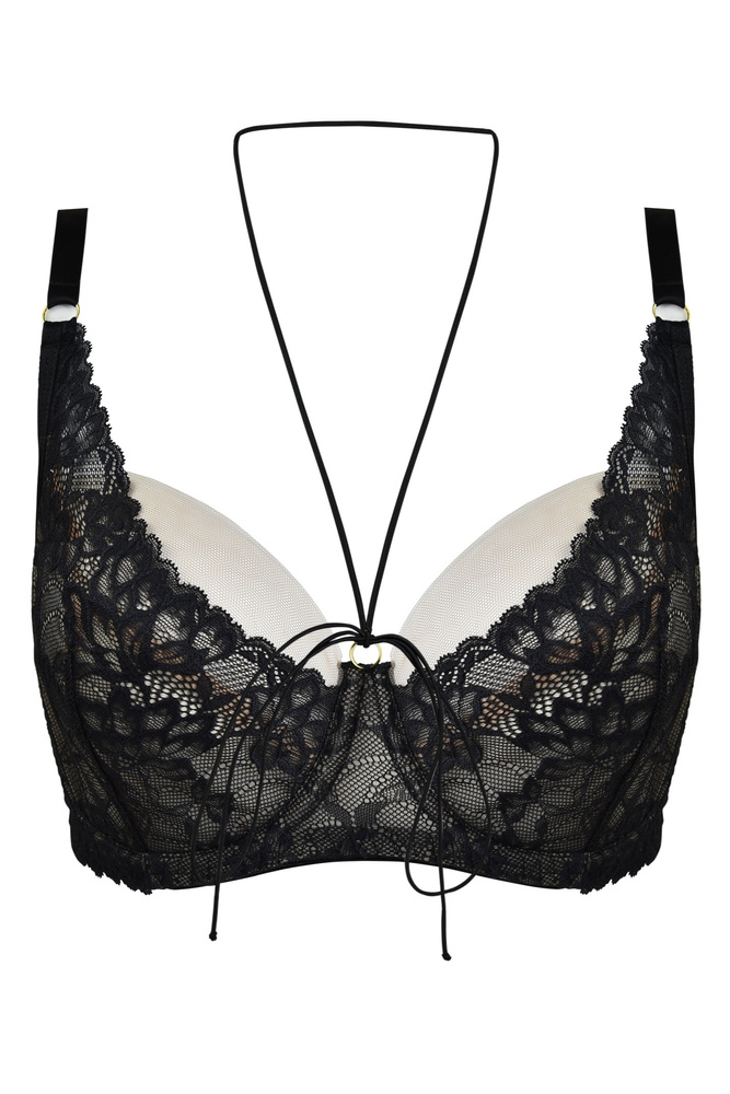 kombinácia tylu telovej farby a elegantnej čiernej čipky,