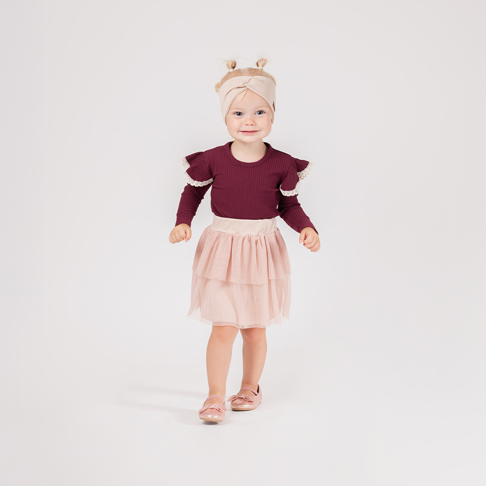 • Elegantná blúzka Nicol z kolekcie Alisa. Rebrovaná bavlna, bordová farba, dlhý rukáv a ozdobné volány s čipkou.