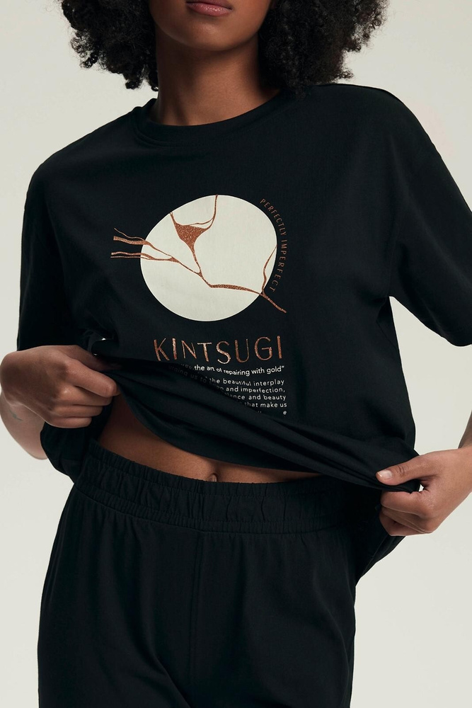 Dámske pyžamo 43728 Dairoku čierne - bavlna, krátky rukáv, rybárske nohavice
