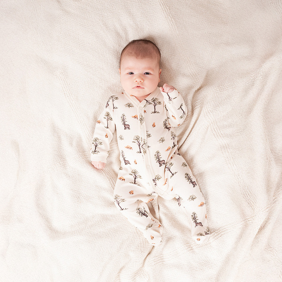 Zapína sa na praktické patentky po celej dĺžke na rýchle a jednoduché prebalenie dieťaťa. Roztomilý lesný vzor s medvedíkmi, líškami a veveričkami mu dodáva osobitý nádych.