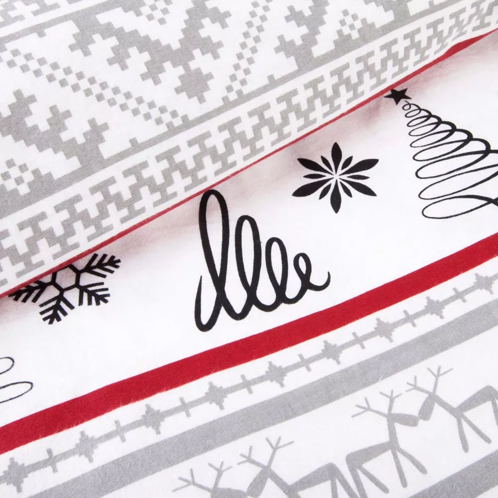 31514/1 Vianočné flanelové posteľné prádlo Flanelove Darymex sivá červená - sada 100% bavlna, teplá a mäkká