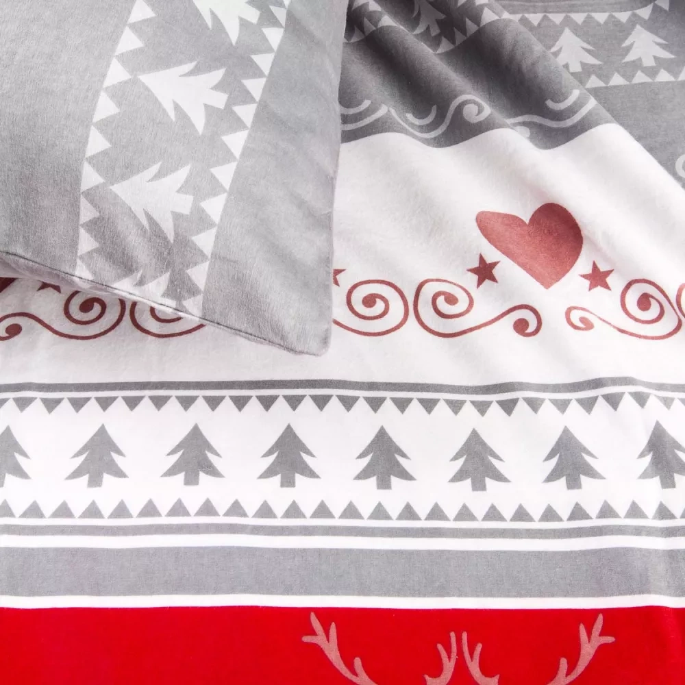 31516/1 Vianočné flanelové posteľné prádlo Flanelove Darymex sivá červená - sada 100% bavlna, teplá a mäkká