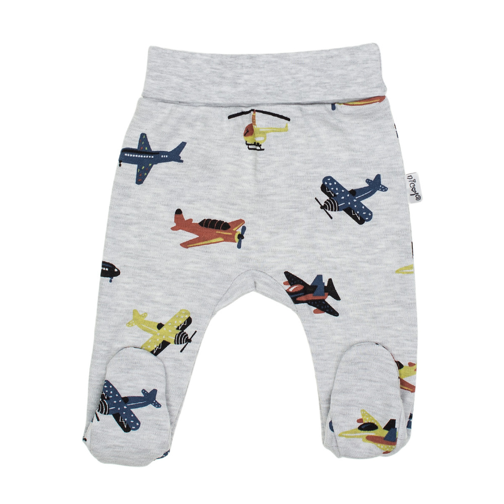 • Bavlnený polospacák Nicol Willy v sivej farbe s potlačou lietadla. Pohodlný pás, zakryté nohy, veľkosti 56-68.