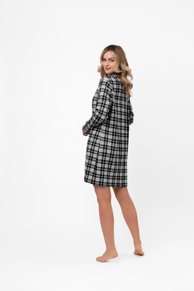 Dámska nočná košeľa Klara - s dlhým rukávom, bavlnená, károvaná, rozopnutá Talianska móda