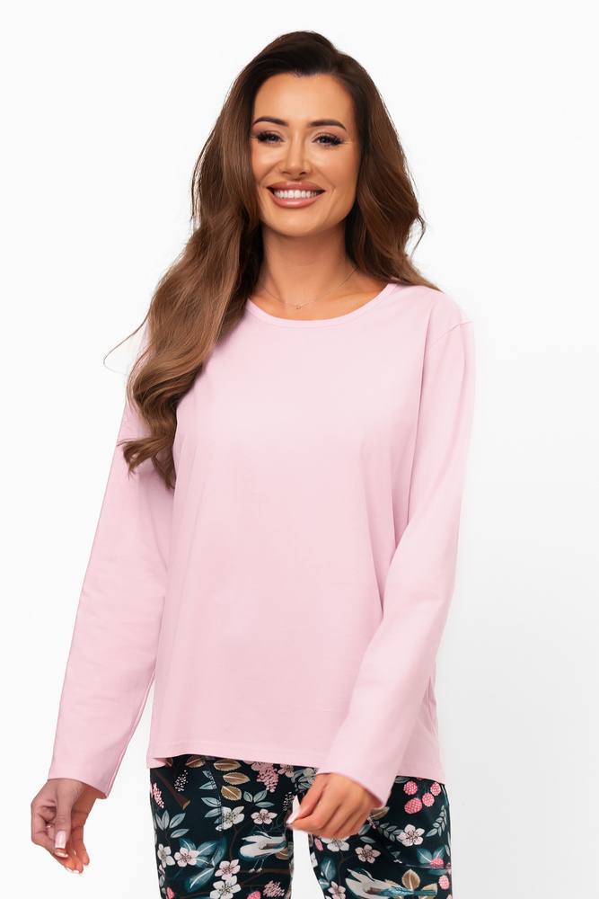 Nočná bielizeň Marisal je pohodlná a praktická súprava ušitá z certifikovanej prírodnej bavlny. Blúzka s dlhými rukávmi a okrúhlym výstrihom má rovný, voľný strih a hladkú štruktúru bez potlače. Svetlá farba mu dodáva ľahkosť a robí ho ideálnym nielen na spanie, ale aj na domácu relaxáciu. Nohavice sú farebne kontrastné a jemný kvetinový vzor v rovnakom odtieni nadväzuje na vrchný diel, čím vytvára ucelený celok. Mäkký elastický pás, bočné vrecká a mierne zúžené nohavice zaručujú plné pohodlie pri nosení. Toto je pyžamo, ktoré sa hodí na noc aj na deň - kedykoľvek sa chcete cítiť pohodlne.