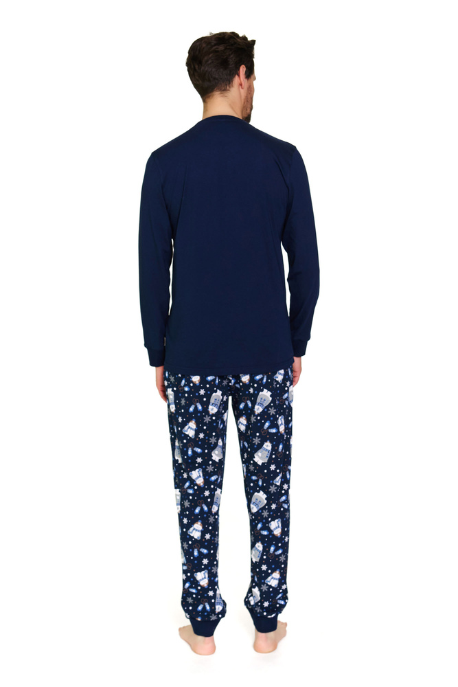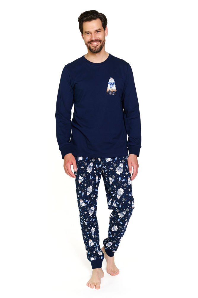 • Pánske pyžamo Doctor Nap 7338 Cozy Bear. Tričko s dlhým rukávom a potlačou, nohavice so zimným vzorom. 100 % bavlna.