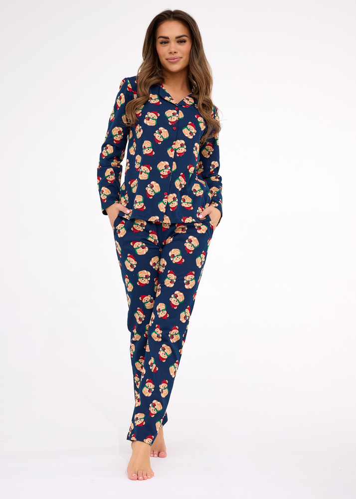 482/459 Teddy 5 Cornette dámske pyžamo - slávnostné, bavlnené, tmavomodré, zapínané na gombíky
