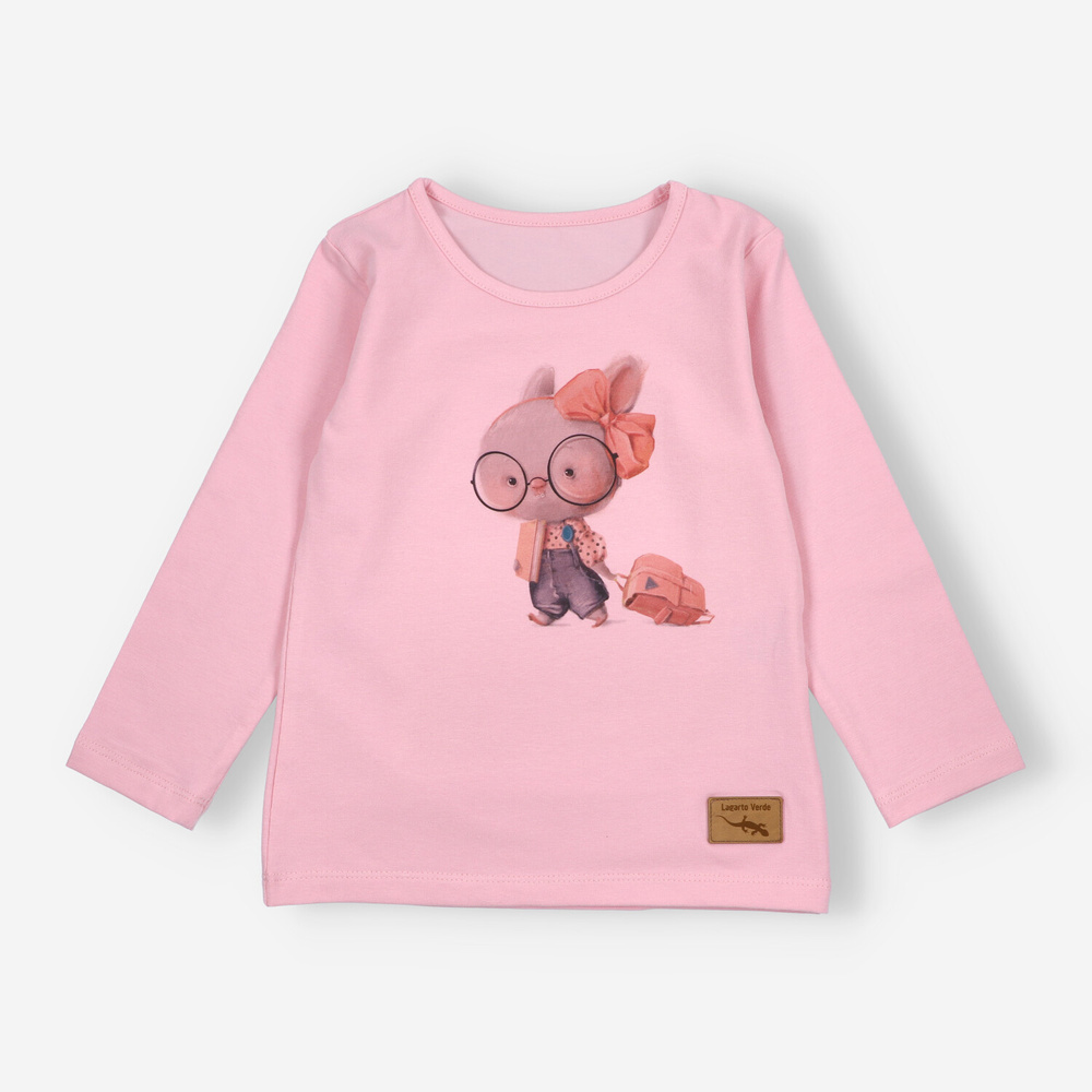 KAR-3011 Dievčenská blúzka s dlhým rukávom Lagarto Verde pink - štýlová, bavlna, poľská výroba