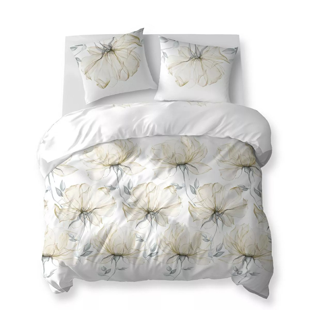 5770 B Cotton Bloom Detexpol biela posteľná bielizeň s veľkými krémovými kvetmi - 100% bavlna, obojstranná, poľská výroba