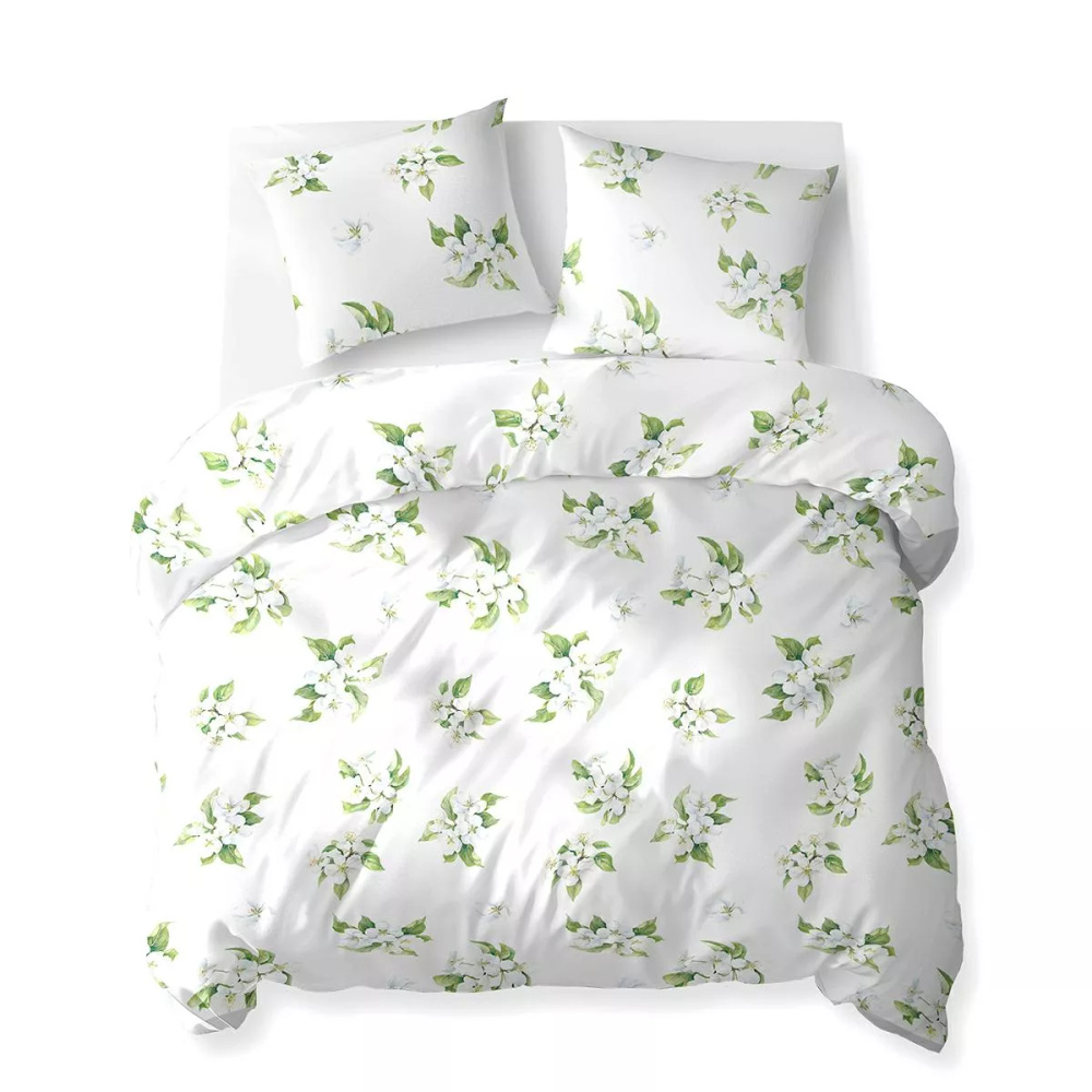 5766 B Cotton Bloom Detexpol Biela posteľná bielizeň s bielymi kvetmi so zelenými listami - 100% bavlna, obojstranná, poľská výroba