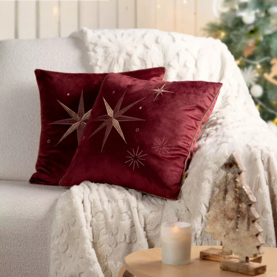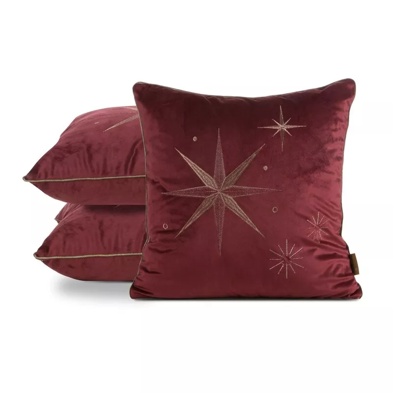 - Elegantná vianočná obliečka na vankúš Eurofirany CHP 259 vo vínovej farbe s výšivkou hviezdy v šampaňskom. Mäkký zamat s jemným leskom vytvára zvláštnu atmosféru a dodáva interiéru sviatočný šarm.
