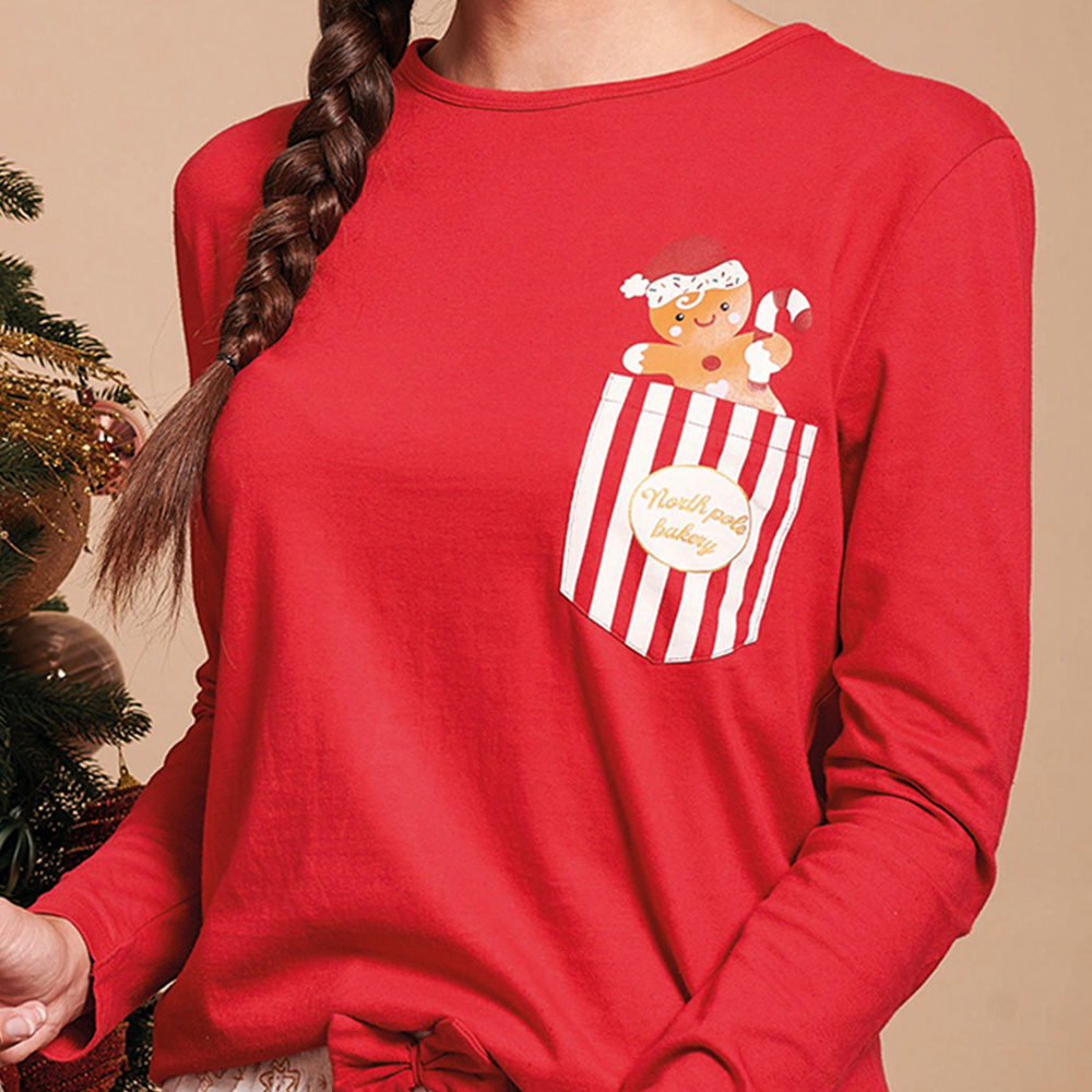 Blúzka s dlhými rukávmi má rozkošné náprsné vrecko a perníkovú potlač, ktorá navodzuje sladkú sviatočnú náladu.