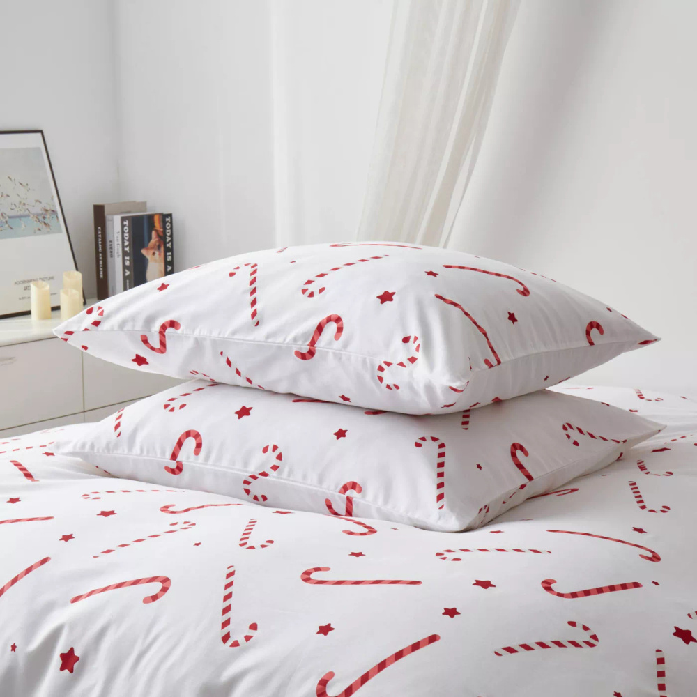 Candycanes Vianočné bavlnené saténové posteľné prádlo Spod Igły i Nitki biele červené candycanes - elegantné a mäkké