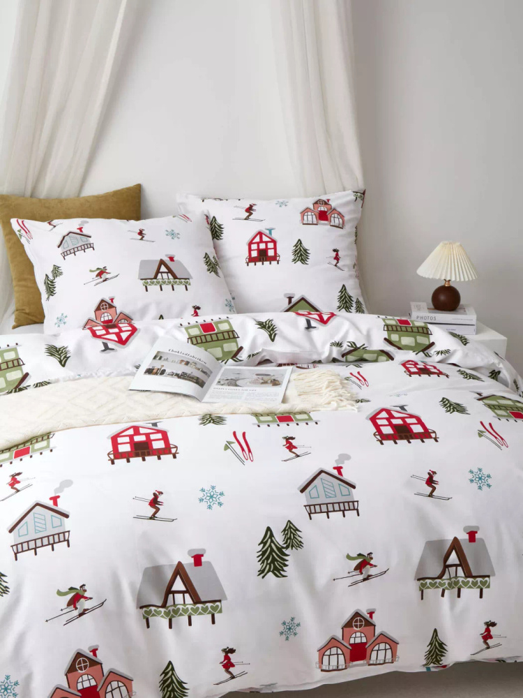 Lyžovanie Vianočné bavlnené saténové posteľné prádlo Spod Igły i Nitki biela červená zelená - elegantné a mäkké