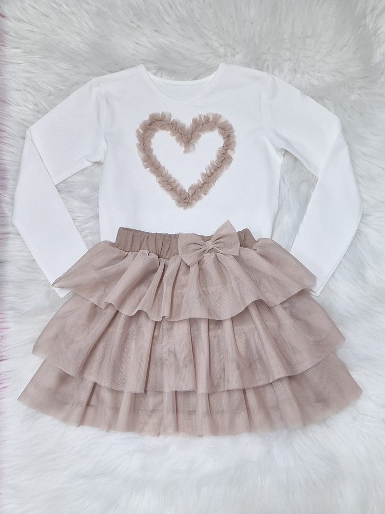 Mia Bambarillo ecru béžová dievčenská blúzka s tylovým srdcom