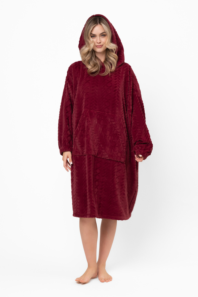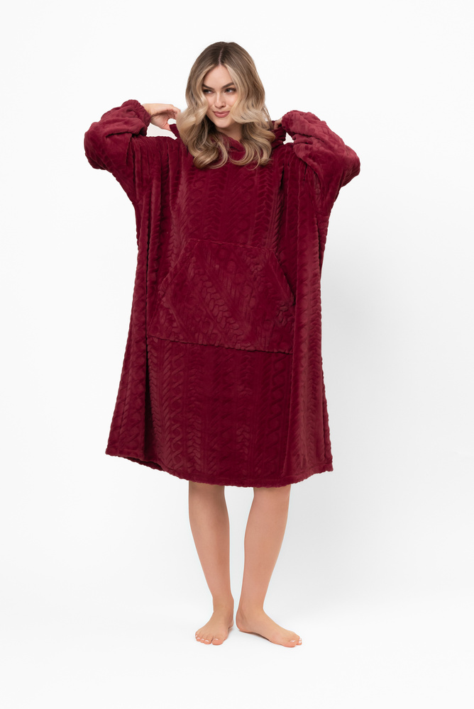 Reno Kocobluza Italian Fashion burgundy - oversize, mäkký bipolárny, unisex, s kapucňou